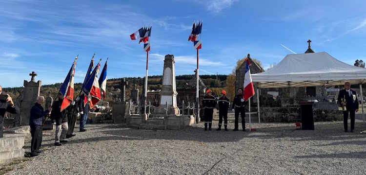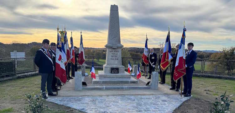 11 novembre 2025. AULON – cérémonie commémorative du 11 novembre 1918 et inauguration de l’aménagement de centre-bourg, après déplacement du Monument aux Morts