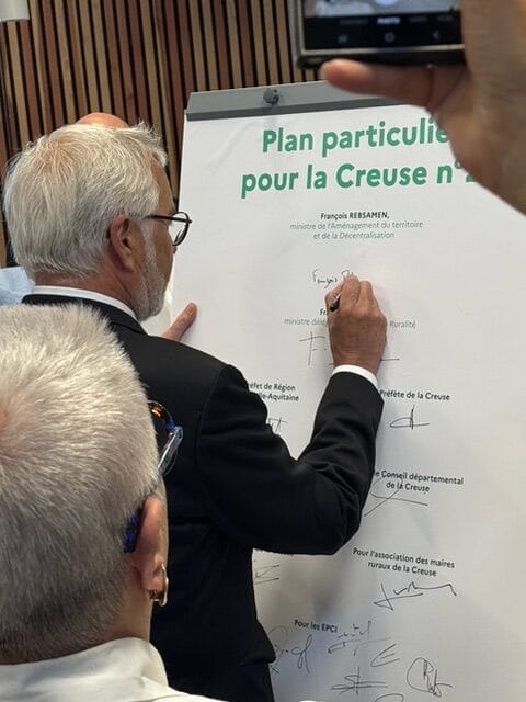 Quarante-trois millions d’euros : c’est le montant apporté par l’État pour abonder le deuxième Plan particulier pour la Creuse ou « PPC 2 ». Un document cadre signé, ce jeudi 22 mai, en début d’après-midi, par François Rebsamen, ministre de l’Aménagement du territoire et de la Décentralisation, et Françoise Gatel, ministre déléguée chargée de la Ruralité, dans les locaux du centre d’hébergement Tremplin nature, à Guéret. Mais également par les représentants du Conseil départemental de la Creuse, de la région Nouvelle-Aquitaine et les intercommunalités creusoises.