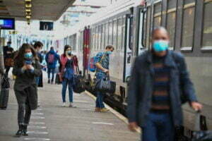 Transports : illustration Polt : voyageurs descendant du train Paris-Limoges sur le quai de la gare des Bénédictins © stephane Lefèvre