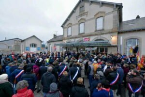 3 décembre 2022. Manifestation à la gare de La Souterraine, pour le rétablissement du train de 7h35