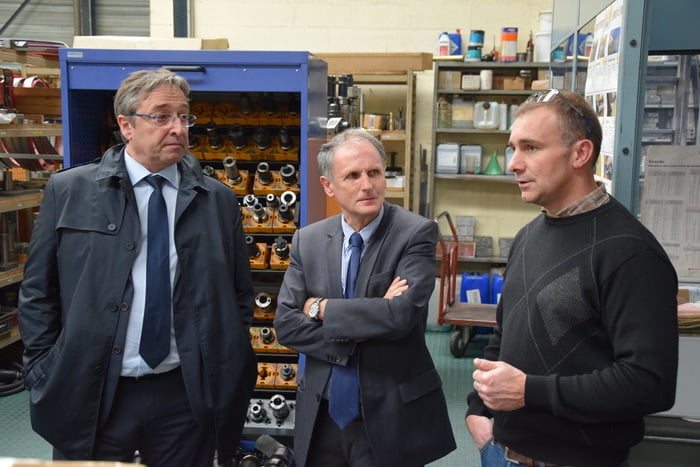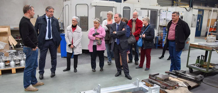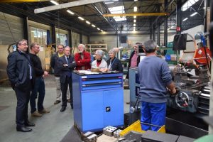 La visite de TOURNAUD MÉCANIQUE GÉNÉRALE, guidée par M. Sylvain TOURNAUD, a réuni, autour des Sénateurs, Mme Françoise SIMON, suppléante du Sénateur JEANSANNETAS, M. Jérôme ORVAIN, conseiller régional, Mmes Marie-Claude MATHIEU et Marie-Françoise VENTENAT, Présidente et vice-présidente de la Communauté de communes du Haut Pays Marchois, M. Jean-Luc PIERRON, adjoint au maire de Crocq et M. Jacques LONGCHAMBON, Maire de Crocq.