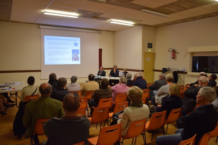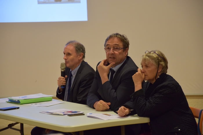 La réunion des élus communaux, intercommunaux, départementaux du canton d’Auzances – et d’un élu régional – s’est ensuite déroulée à la salle polyvalente de Crocq. Une présentation du travail parlementaire mené au Sénat a introduit cette réunion d’échanges. Les Sénateurs évoquant notamment leurs travaux au sein de leurs commissions permanentes respectives (affaires sociales pour É. Jeansannetas ; culture, éducation, communication et sport pour JJ. Lozach). Partant des travaux nationaux présentés de manière approfondie et d’un rappel historique dédié aux présidents successifs du Sénat, l’accent a ensuite été porté sur les actions et le rôle des Sénateurs dans leur circonscription.