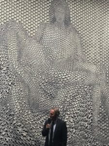 L’ancien Secrétaire d’Etat auprès du Ministre de la Défense chargé des Anciens Combattants et de la Mémoire, Jean-Marc Todeschini était venu dévoiler sa maquette – en présence de Thomas Bayrle – nous dévoilons aujourd’hui l’œuvre. Celle-ci partira prochainement pour le nouvel Historial et sera accrochée pour son inauguration le 11 novembre prochain, en présence du Président de la République française et de la Chancelière allemande. Elle y sera présente chaque année d’avril à mi-novembre et elle sera amenée à être présentée dans différents lieux de mémoire et en particulier du Grand Est, région dans laquelle une demande de labellisation « mémoire des conflits » est en cours. Elle sera également présentée dans le Musée d’art moderne et contemporain Würth à Erstein près de Strasbourg, jusqu’à fin janvier 2018, avant de revenir à Aubusson pour l’ouverture de la saison 2018.
