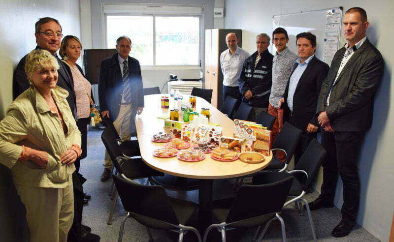 La visite de la pâtisserie industrielle LES COMTES DE LA MARCHE, guidée par M. Éric LAVERGNE, a réuni, autour des Sénateurs, Mmes Armelle MARTIN et Françoise SIMON, suppléantes des Sénateurs, M. Cyril VICTOR et M. François RIVA, Président et vice-président de la Communauté de communes du Carrefour des Quatre Provinces et M. Michaël JOUANNETON, Maire de La Celle sous Gouzon.
