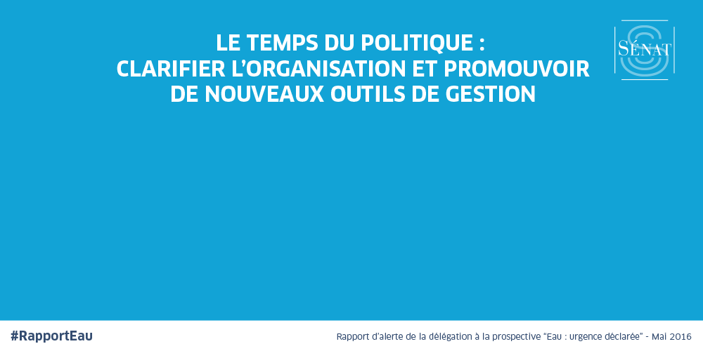Le rapport d’information « Eau : urgence déclarée » vient de paraître. C’est un travail que j’ai réalisé avec mon collègue Henri TANDONNET (Sénateur du Lot-et-Garonne) dans la cadre de la Délégation sénatoriale à la prospective.